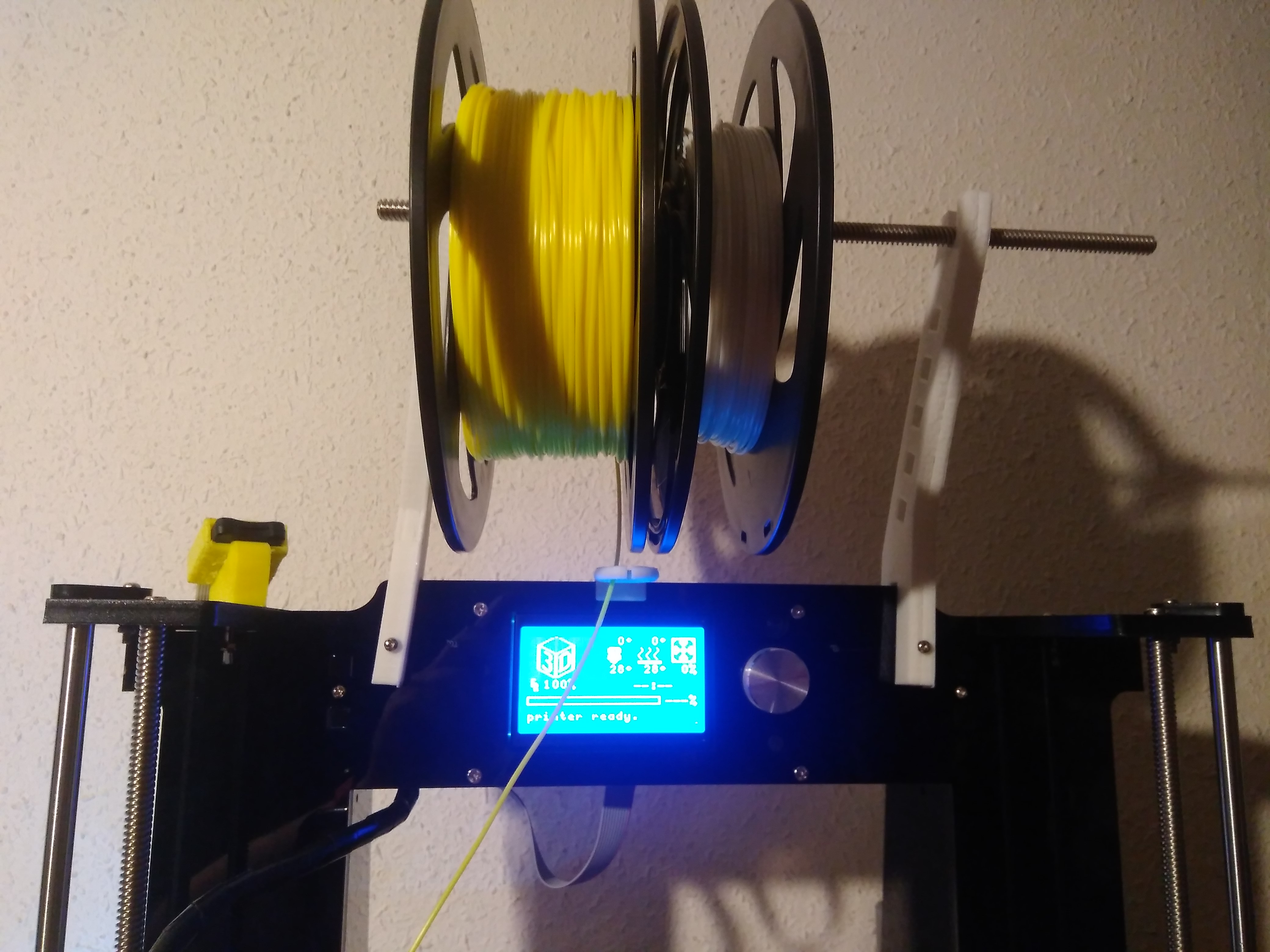 Un soporte para los rollos de filamento que es mas cómodo tenerlos encima de la impresora
