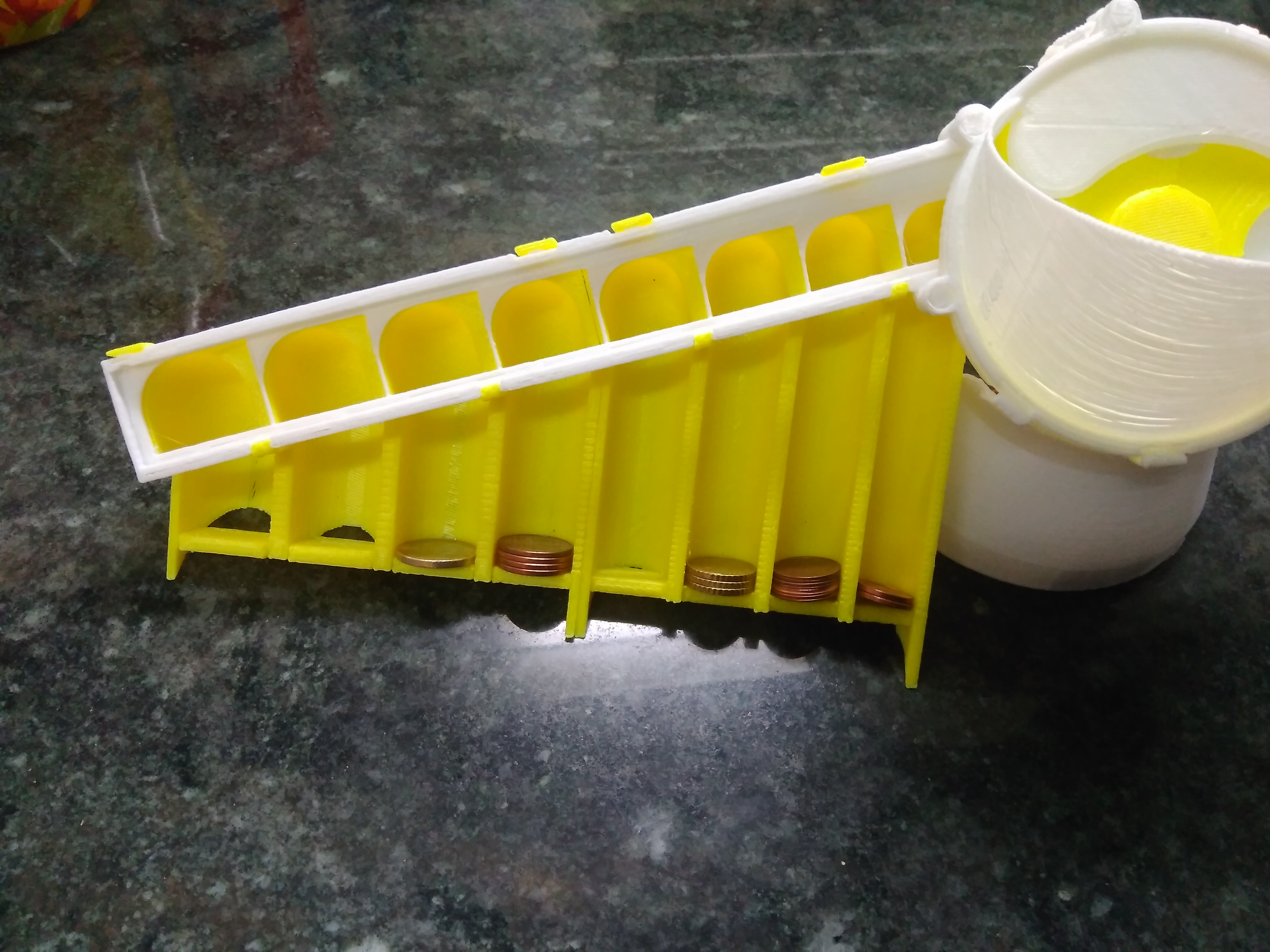 Usando la impresora 3D me puesto manos a la obra y me puesto a construir una máquina que separa monedas, lo primero descargue las piezas de Descarga las piezas para imprimir y manos a la obra para imprimirlas