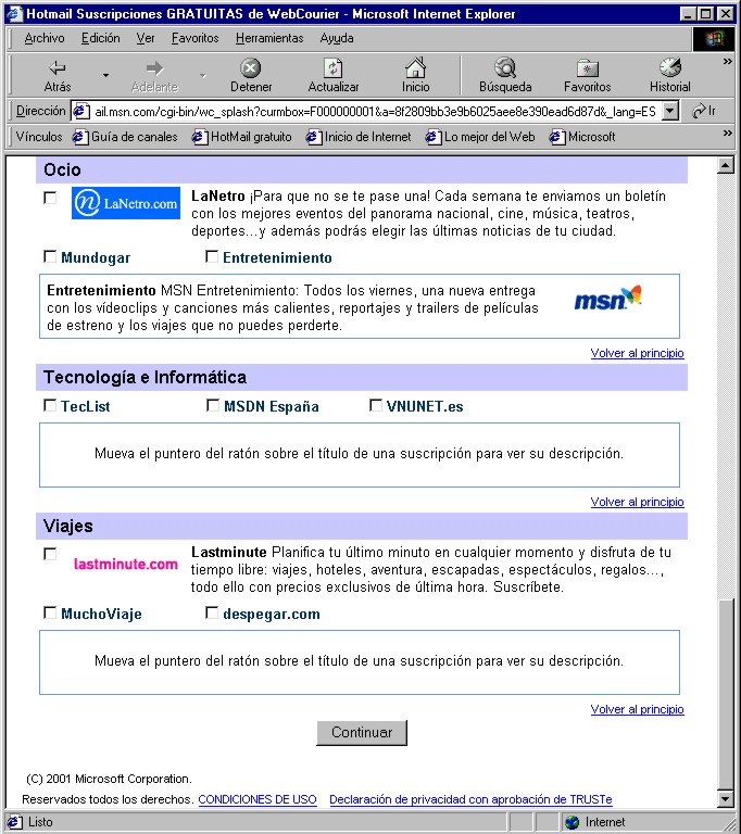 correo tendréis que dar al botón de continuar en Hotmail os aparecerá